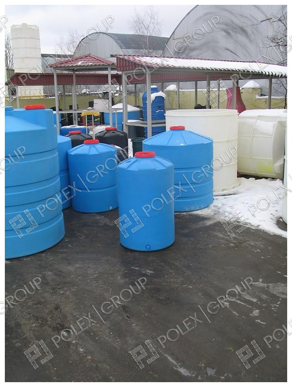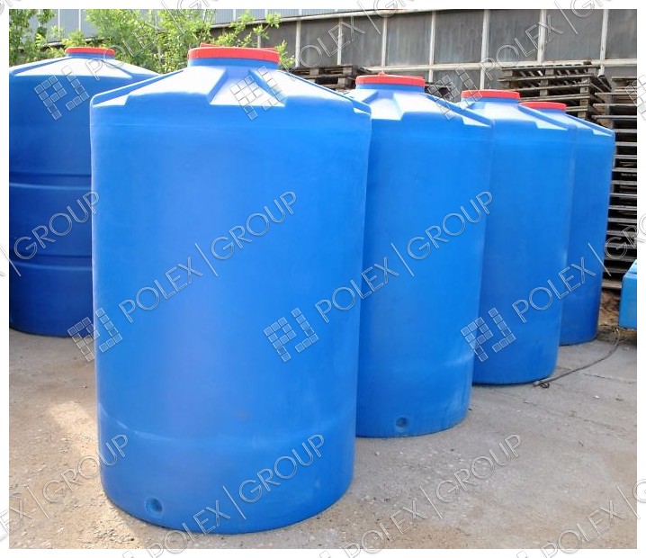 Пластиковые емкости цилиндрической формы вертикальные с винтовой полимерной крышкой объемом 1500 литров.