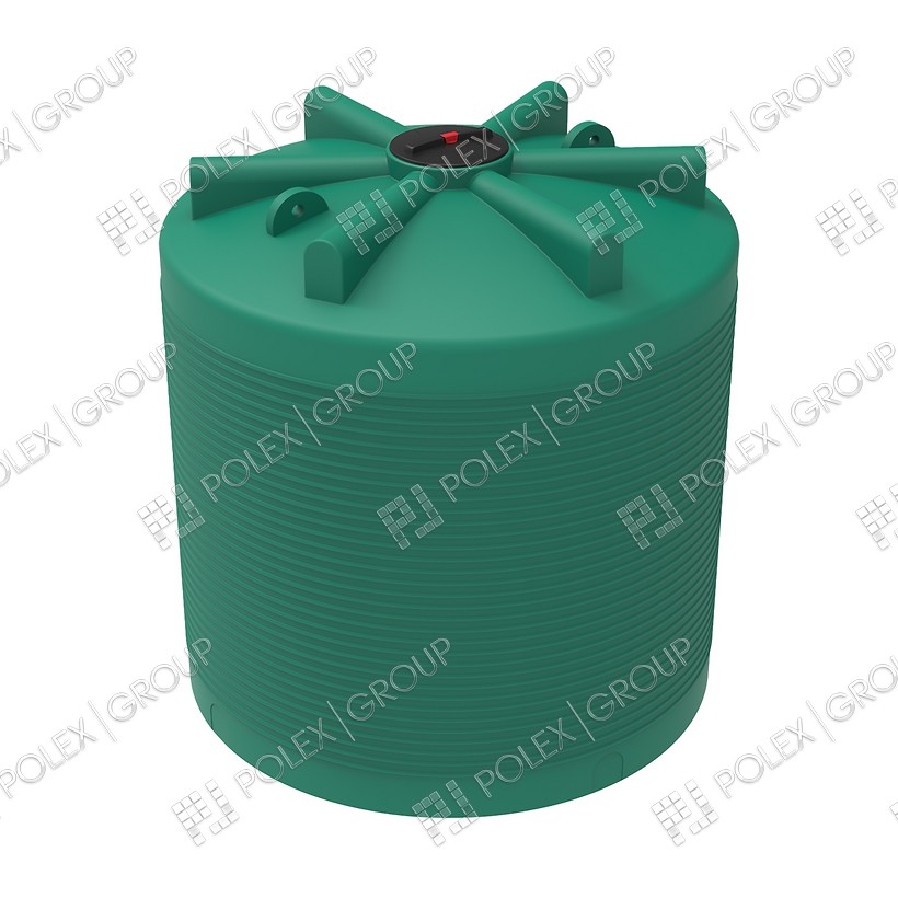 Пластиковая цельнолитая емкость 7500 литров серия PGEVL круглой формы наземная вертикального исполнения c удобной крышкой оснащенной дыхательным клапаном.