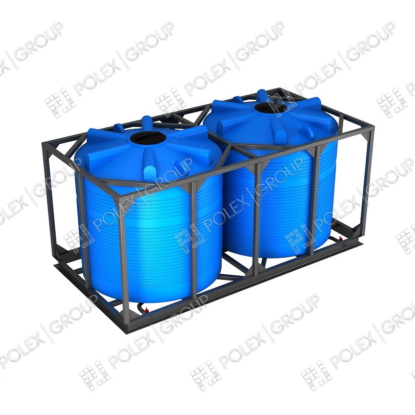 Полиэтиленовая емкость в стальном силовом каркасе объемом 10м3 цилиндрической формы удобна для применения для перемещения на объектах строительства, в промышленной сфере.