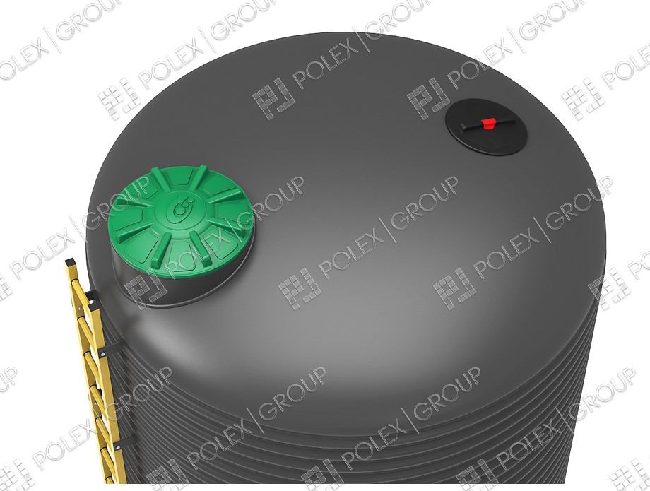 Каждая емкость свыше 5000 литров может оснащаться лестницей из стеклопластика для подъема на емкость для обслуживания. Резервуар оснащается 2 крышками диаметром 800 и 350 - 450 мм на резьбе. Одна из крышек имеет дыхательный клапан.