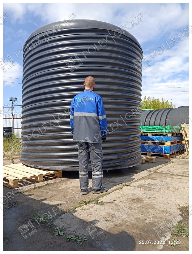 Уникальные пластиковые емкости из полиэтилена большого объема цилиндрической формы вертикальной установки для временного, постоянного и регламентированного хранения большого объема горячей или холодной воды, питьевой и технической. Max температура жидкости до +65С.
