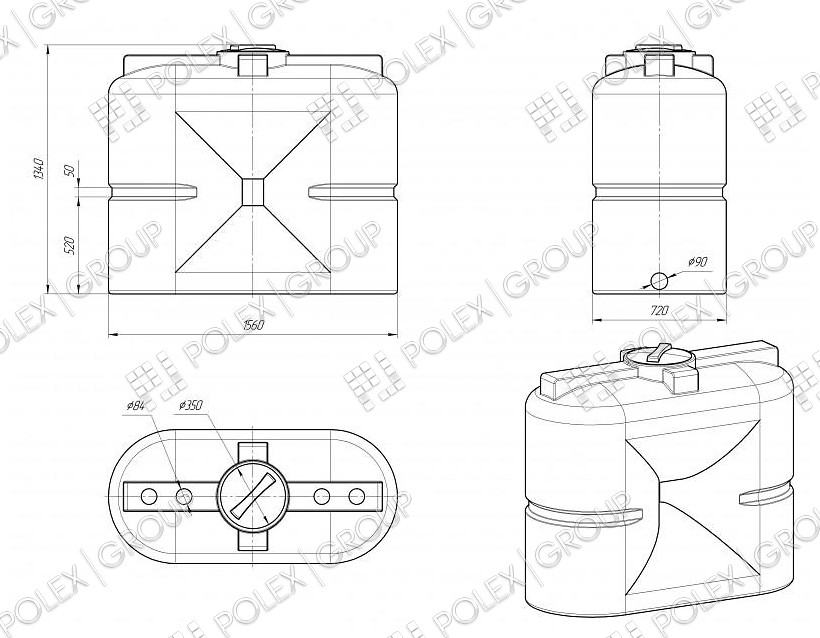 Топливный бак представляет собой бесшовный прямоугольный, герметичный сосуд самонесущей конструкцией изготовленнный методом ротационного формования. Топливная емкость легко обслуживается и моется проточной водой в отличие от емкостей изготовленных из стали.
