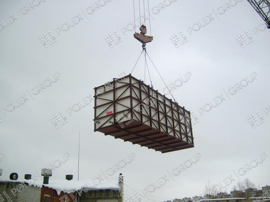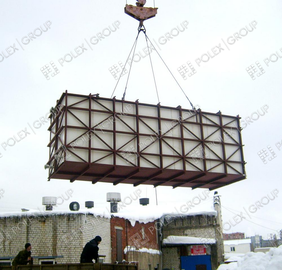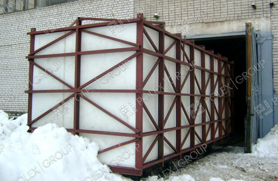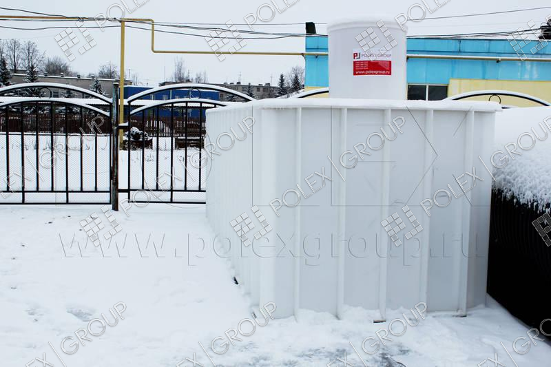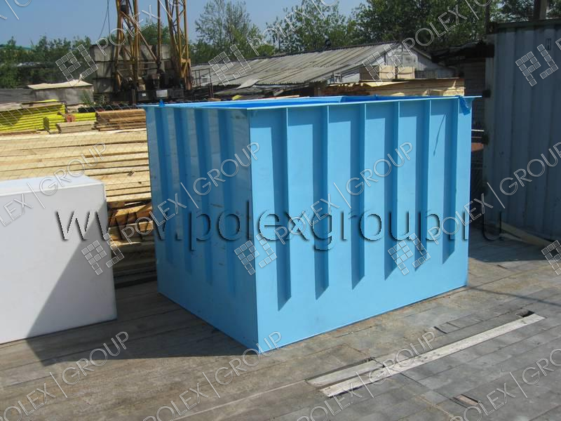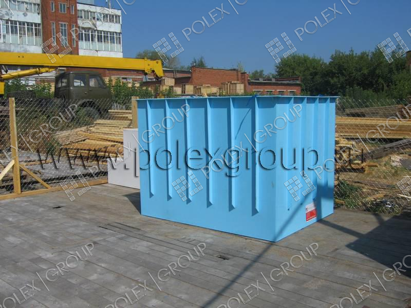 Емкость изготовлена для установки в металлический каркас, для регламентированного хранения запаса технической воды. Толщина стенки емкости составляет 15 мм. Используется в качестве пожарной емкости.