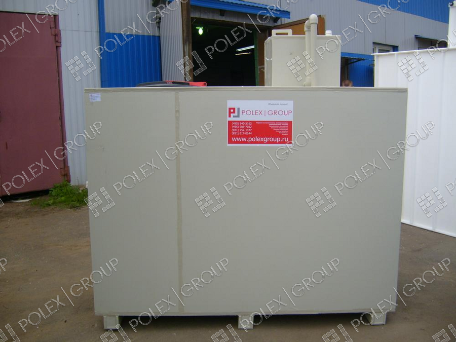 Предназначена емкость пропиленовая для хранения дизельного топлива прямоугольная POLEX PLAST-DT объемом 15 куб.м. (15000 л) с системой забора и подачи дизельного топлива (фикс пакет)