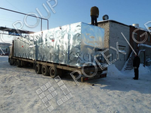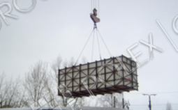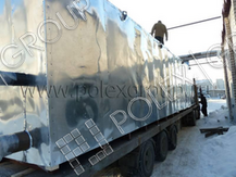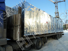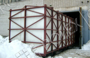 Емкость изготовлена по заказу заказчика в стальном каркасе, с гидроизоляцией, утеплителем, снаружи покрыта (обшита) оцинкованной сталью. Предназначена для уличного наземного применения, для хранения дизельного топлива.
