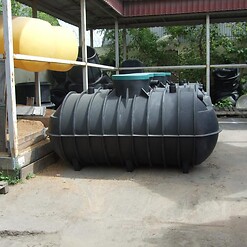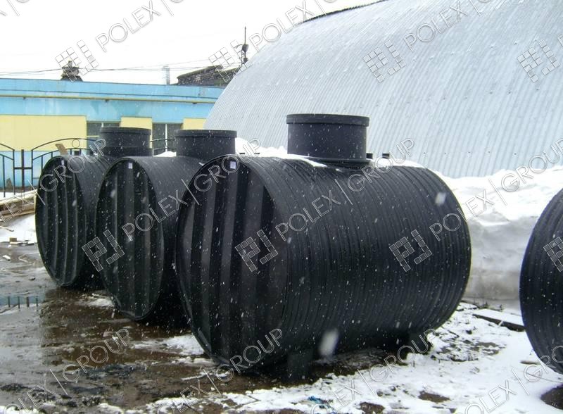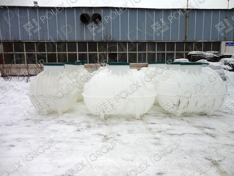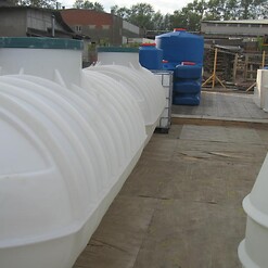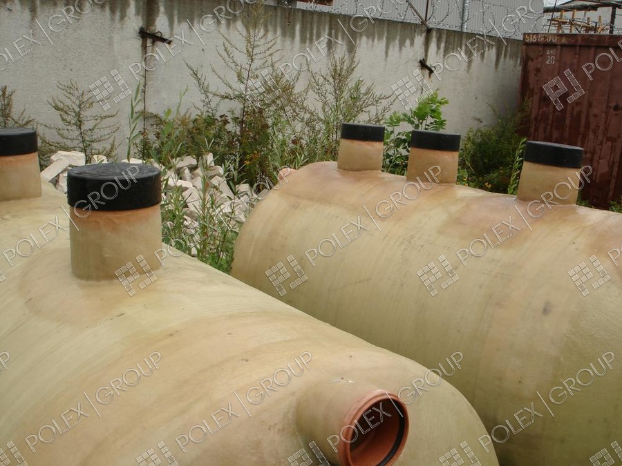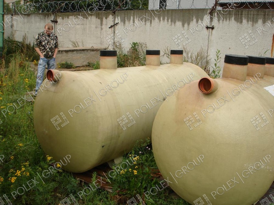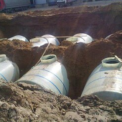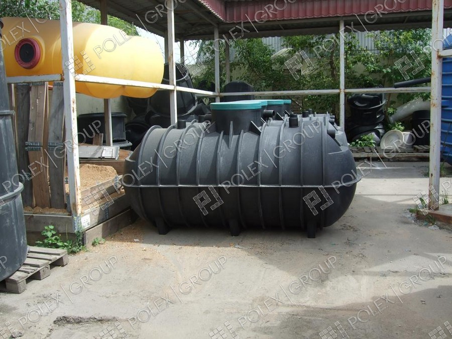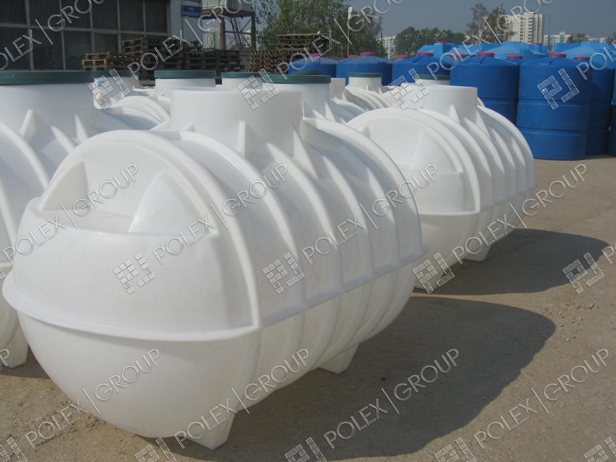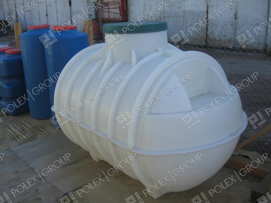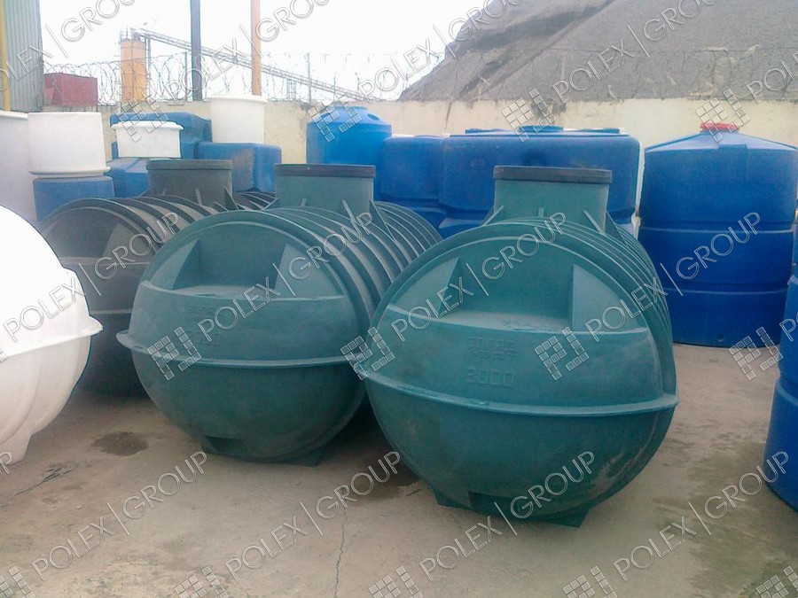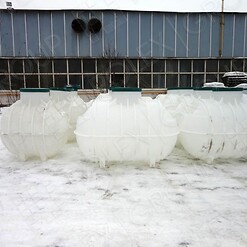 Фотогалерея накопительных односекционных полых канализационных емкостей под септик для сбора сточных вод от частных и промышленных объектов из полиэтилена и стеклопластика.
