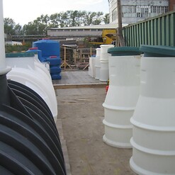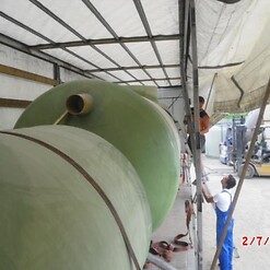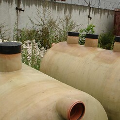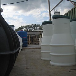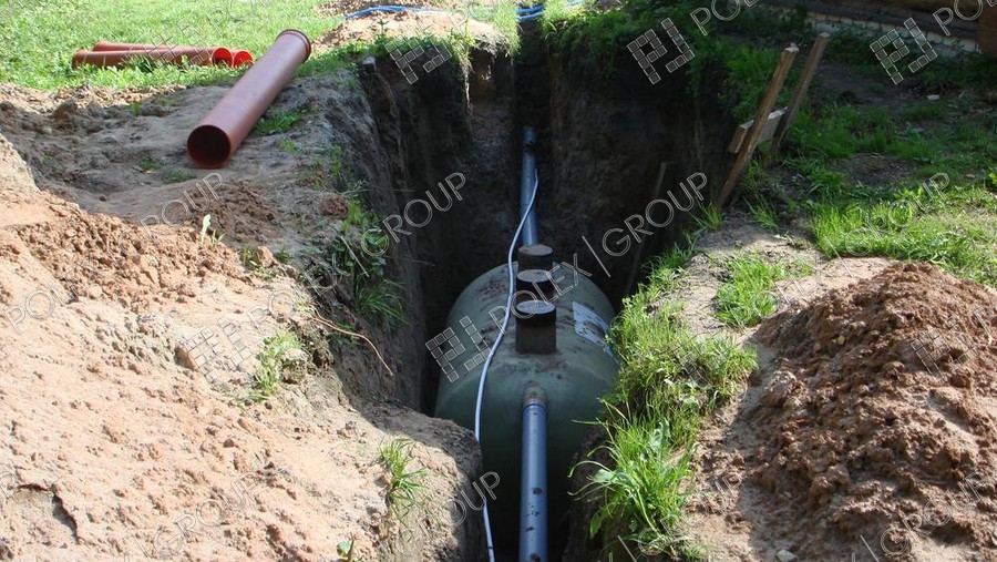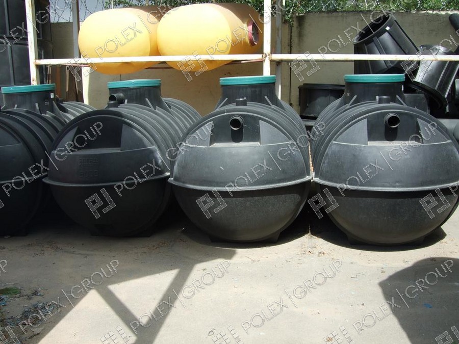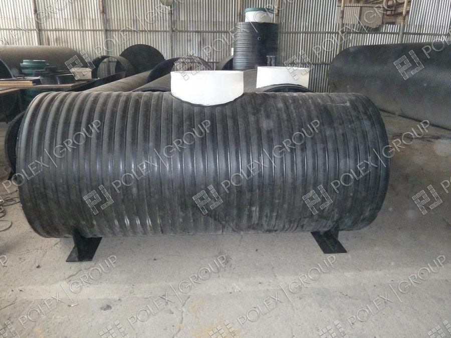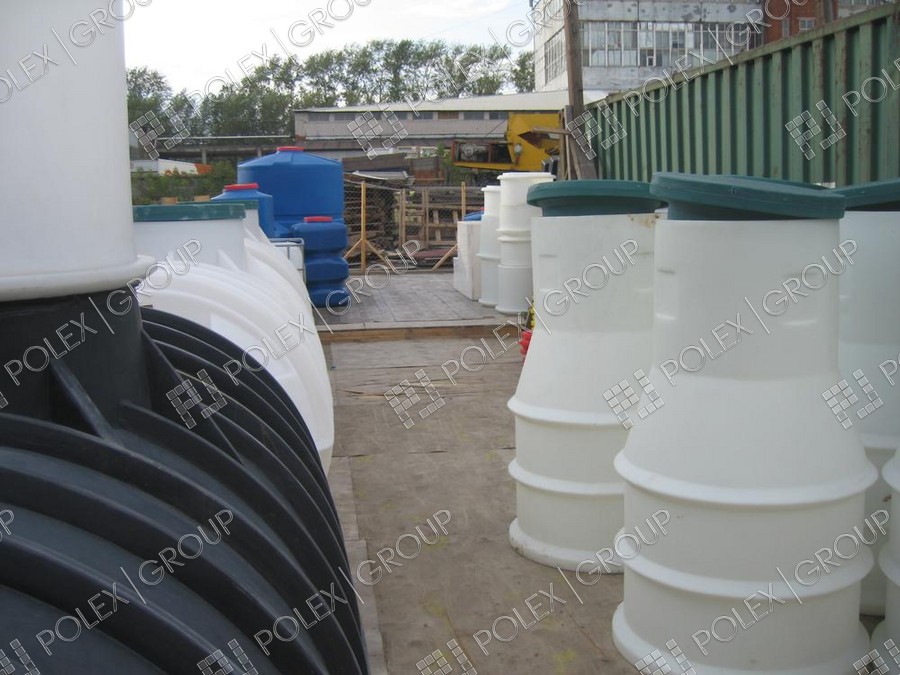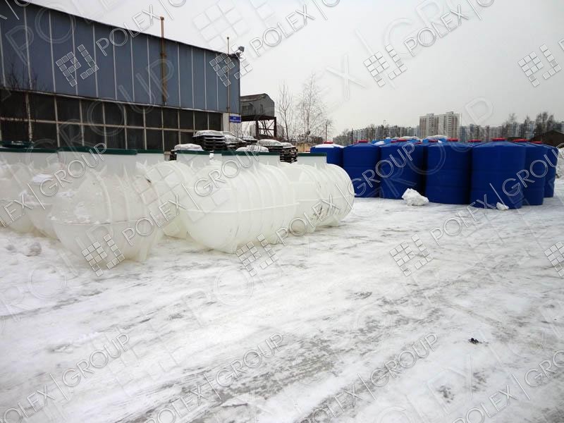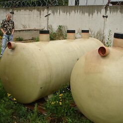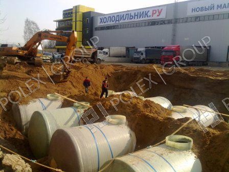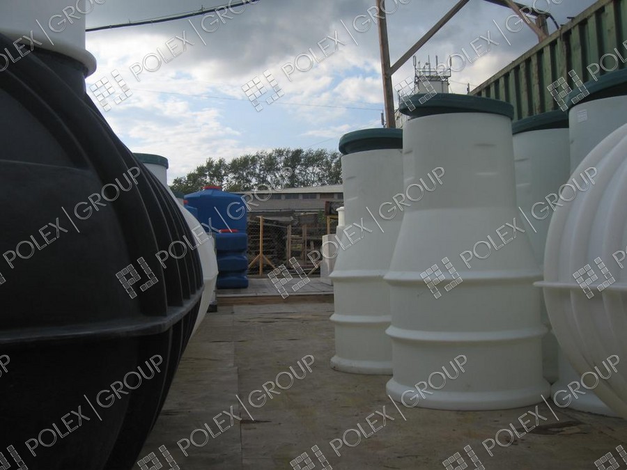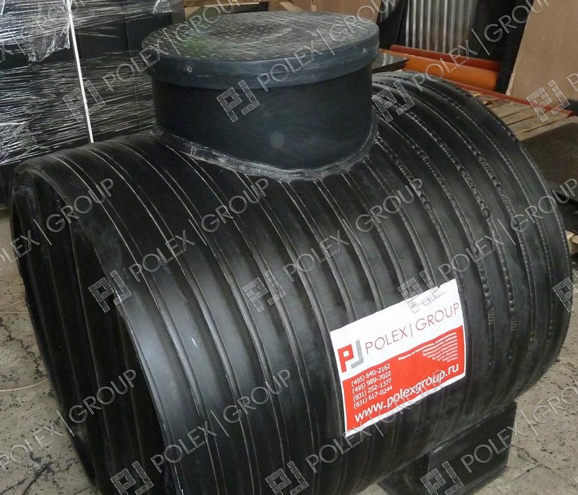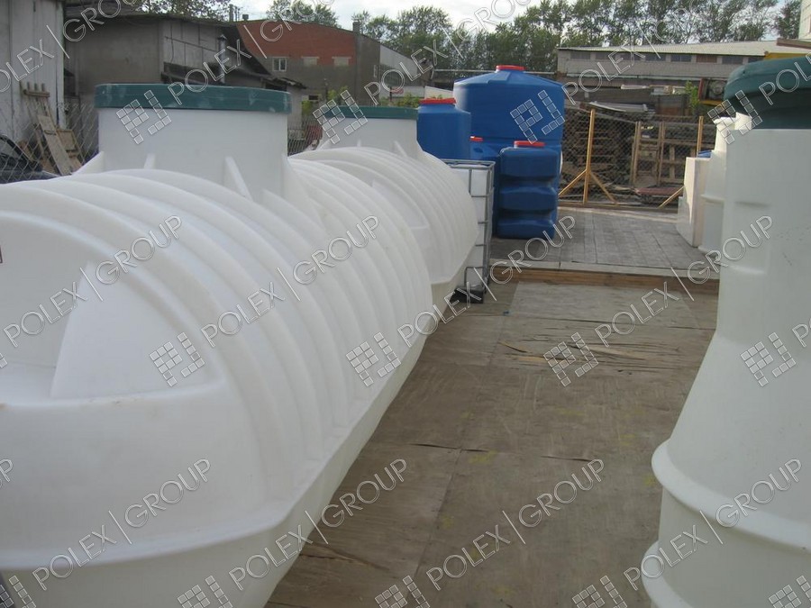 Фотогалерея накопительных односекционных полых канализационных емкостей под септик для сбора сточных вод от частных и промышленных объектов из полиэтилена и стеклопластика.