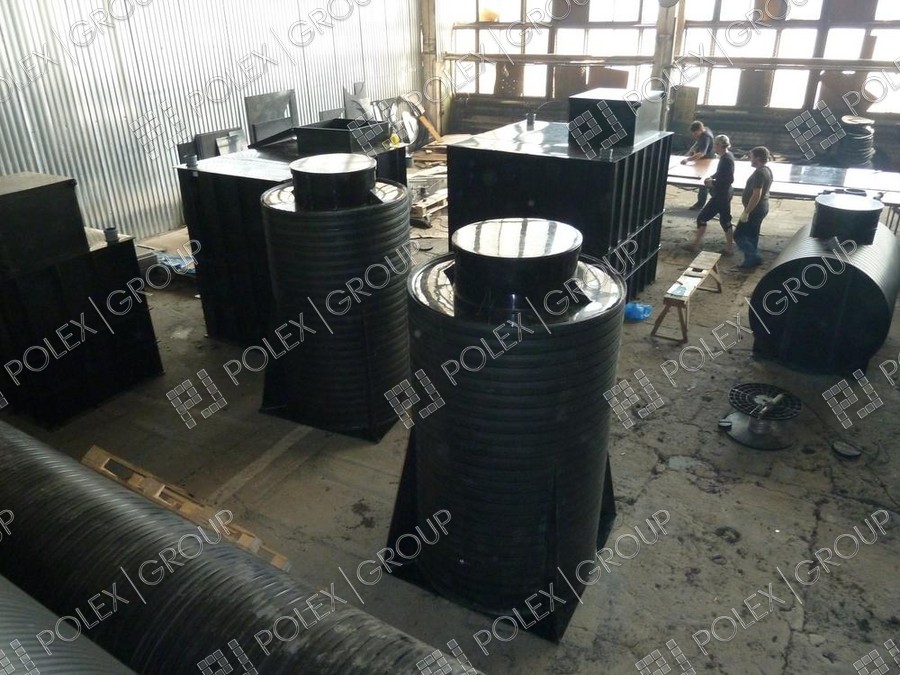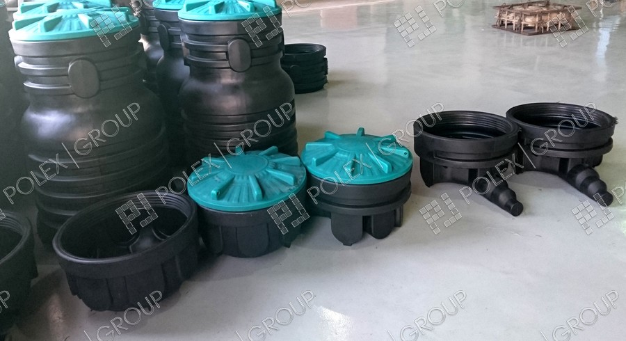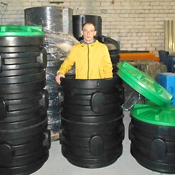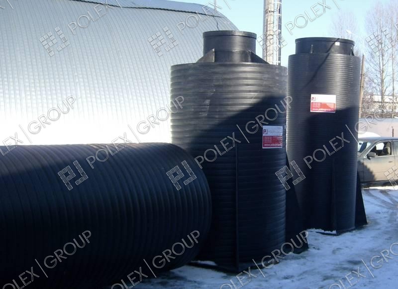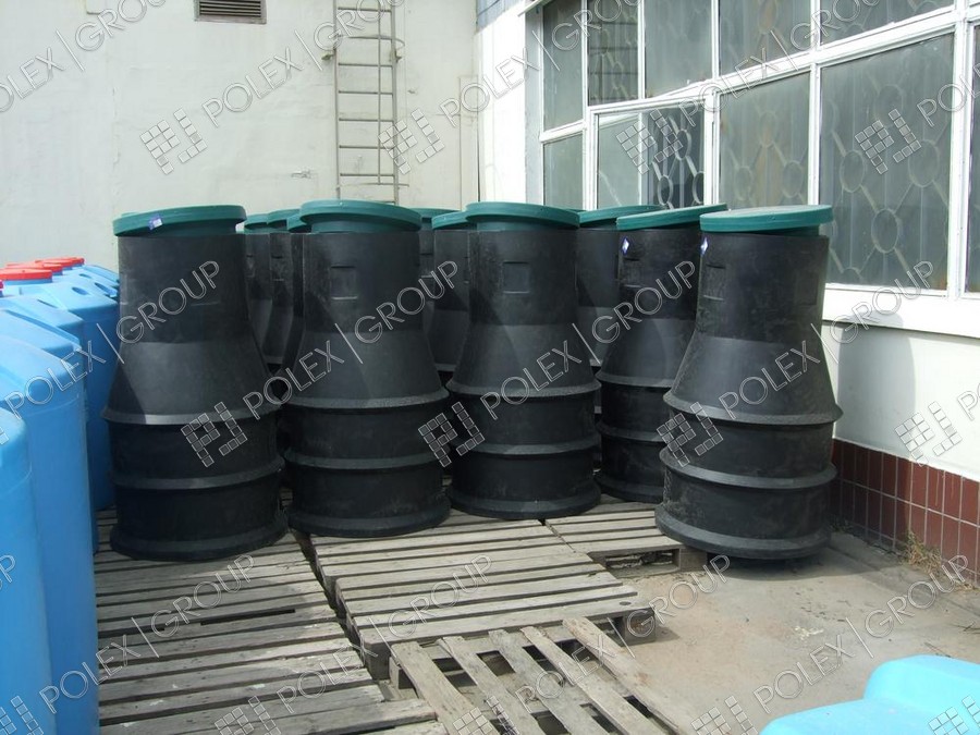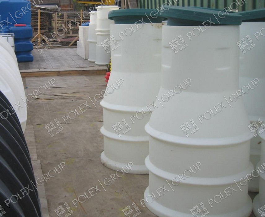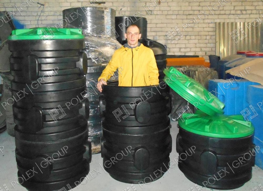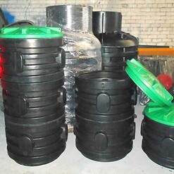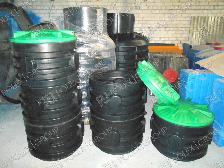 Фотографии пластиковых канализационных колодцев, распределительных колодцев и смотровых для ливневой и технической канализации, частного и гражданского строительства из полиэтилена.