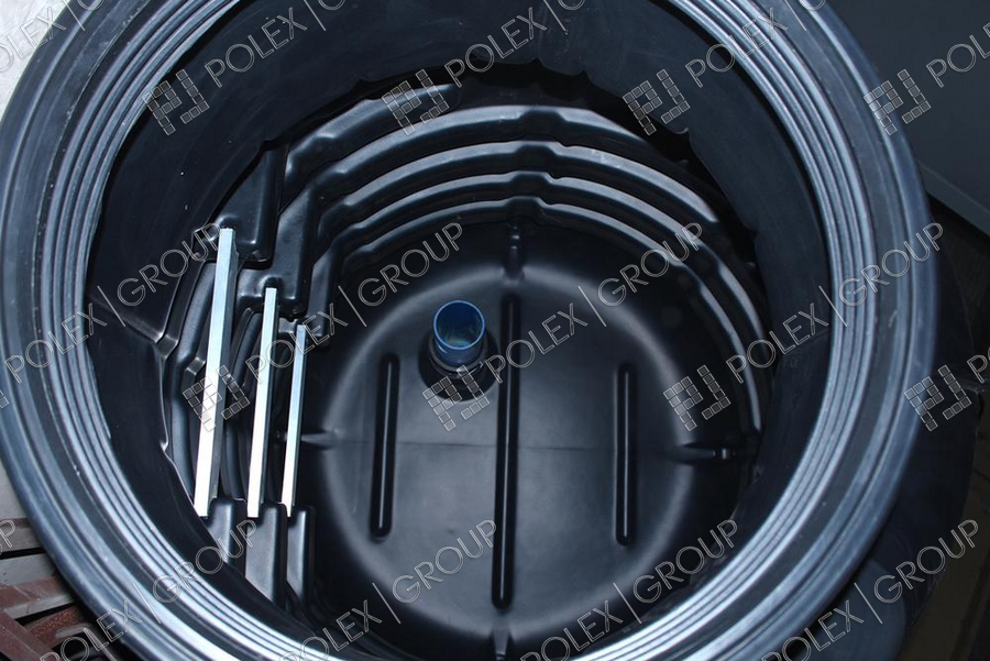 Кессоны, изготовленные методом ротационного формования, представляют из себя бесшовные, колодезные кессоны вертикальной цилиндрической формы специальной конструкции с усиленными ребрами жесткости, люком обслуживания и необходимыми посадочными площадками для ввода трубопровода и кабель канала. Данные кессоны 100% герметичны, просты в монтаже, имеют хорошие прочностные характеристики.