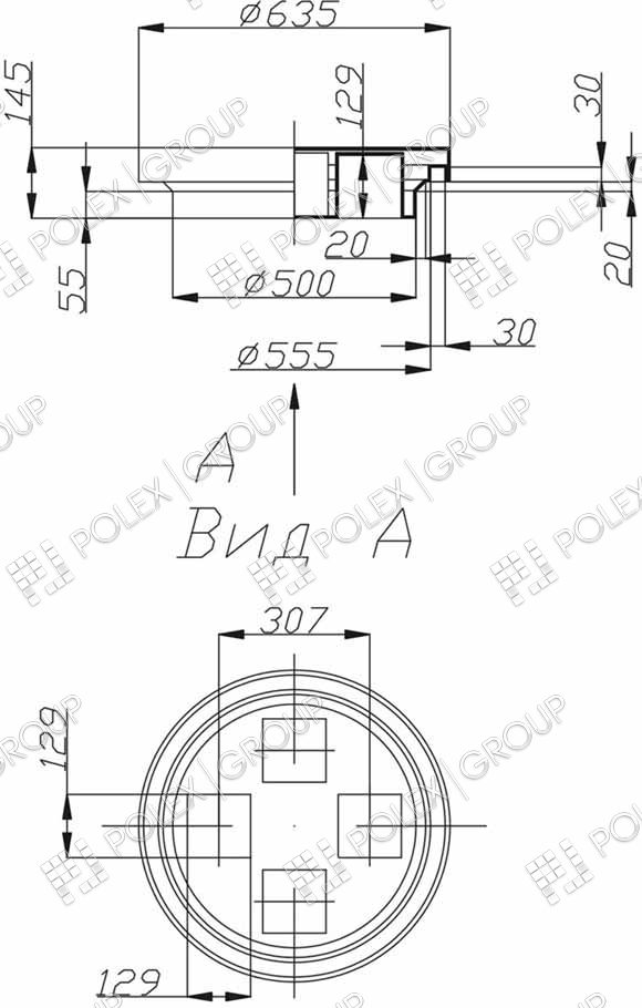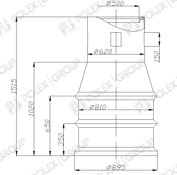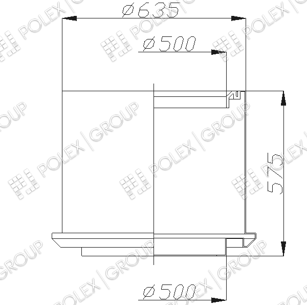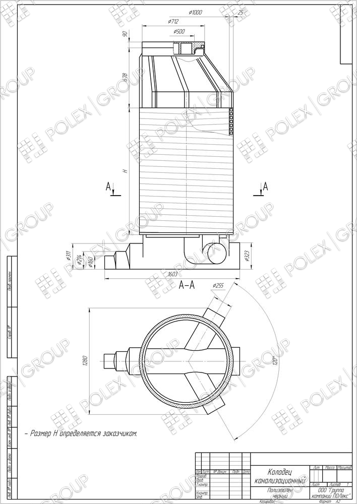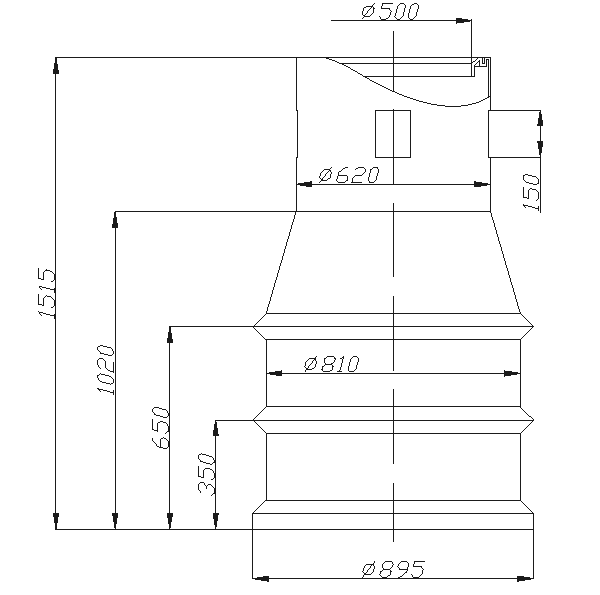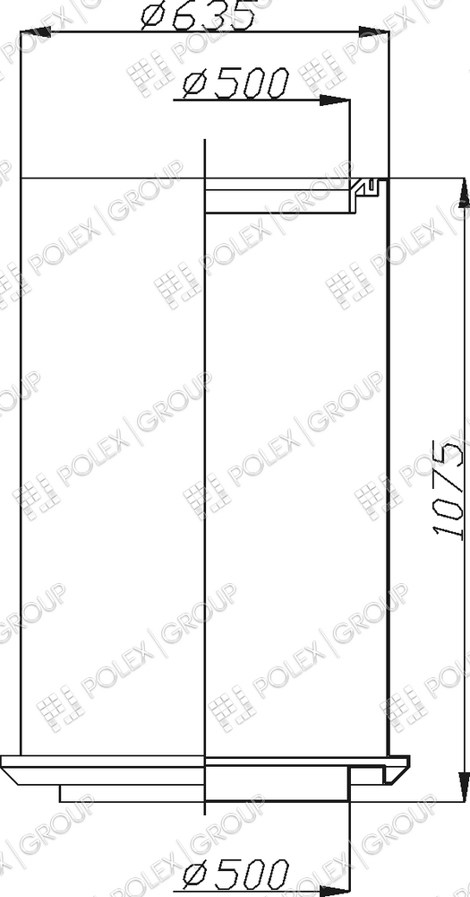 Конструктивно представляет собой бесшовную вертикальную конструкцию с кольцевыми ребрами жесткости и пригрузочной юбкой. Для набора необходимой высоты применяются удлиняющие секции высотой 500 мм диаметром 450 мм. Снабжен прочной винтовой крышкой на резьбе.