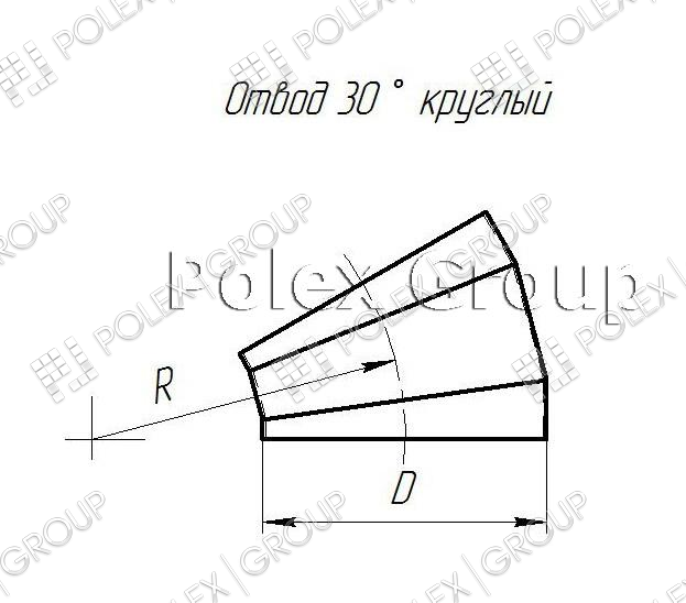 Компания производит и предлагает Вашему вниманию отводы 30 градусов на круглую вентиляцию